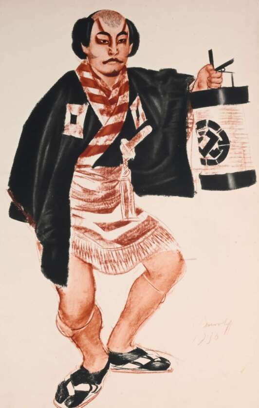 • одна из 32 цветных иллюстраций из альбома: Яковлев А., Елисеев С. “Японский театр (Кабуки)” Iacovleff A., Elisseeff S. “Le Théatre japonais (Kabuki)”.